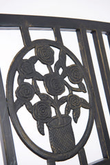 The new Coalbrookdale Duo Bench is crafted from sturdy steel tubing with decorative cast iron back rests each featuring a striking floral centre piece. This very attractive companion seat can be placed in a favourite spot in the garden to simply relax and enjoy those precious moments together. Generously proportioned seats measuring L52 x D41cm with a seating height of 41cm. The adjoining table with shelf measures 52cm at the rear & 38cm at the front with a depth of 49cm providing ample space for drinks & snacks. The duo bench has a 42mm parasol aperture to accommodate standard parasols. Durable powder coated covering with an antique bronze finish.