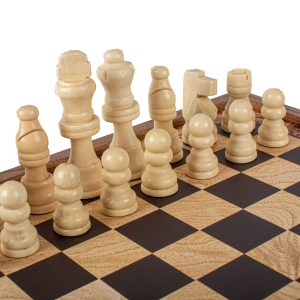 SET INCLUDES: 32 Wooden Chessmen, 32 Wooden Backgammon Checkers, 4 Dice