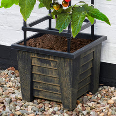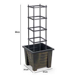 4 Tier Vegetable/Plant Trellis Planter. Add a touch of style to any garden, patio, balcony, or terrace with this all-weather growing planter which is ideal for supporting Tomatoes or Strawberries. The trellis planter is great for clematis or sweet pea in fact any climbing plant. If you remove the trellis the planter can be used as a planter for any plants. Manufactured from UV-stabilised polyurethane which is highly durable, lightweight, and weather resistant ensuring a practical and maintenance-free planter that will retain its attractive appearance all year round. In a bronze finish.