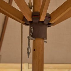 The Ashdown Wooden Parasol - 2.5m is ideal for introducing an area of shade to your favourite outdoor dining area. Constructed from a durable hardwood frame, with an attractive natural coloured UV treated polyester fabric cover which resists fading from the sun. A useful pulley cord mechanism for opening and closing ensures easy operation of the Ashdown Wooden Parasol.