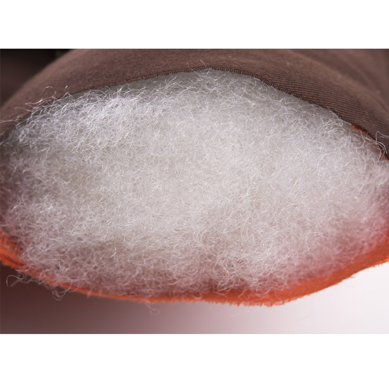 Hanging chair with brown and orange seat on a white background