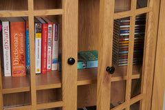 A stylish and elegant display cabinet for storing your DVD’s, CD’s, Books or Ornaments. The double doors close securely via magnetic fasteners keeping your treasured collections neatly stored away. Inside the spacious interior there are two shelves which are adjustable to suit your needs and it also has a handy drawer at the base of the cabinet for storing any other items. Crafted from MDF with Perspex doors and a realistic wood effect finish in Oak colour.