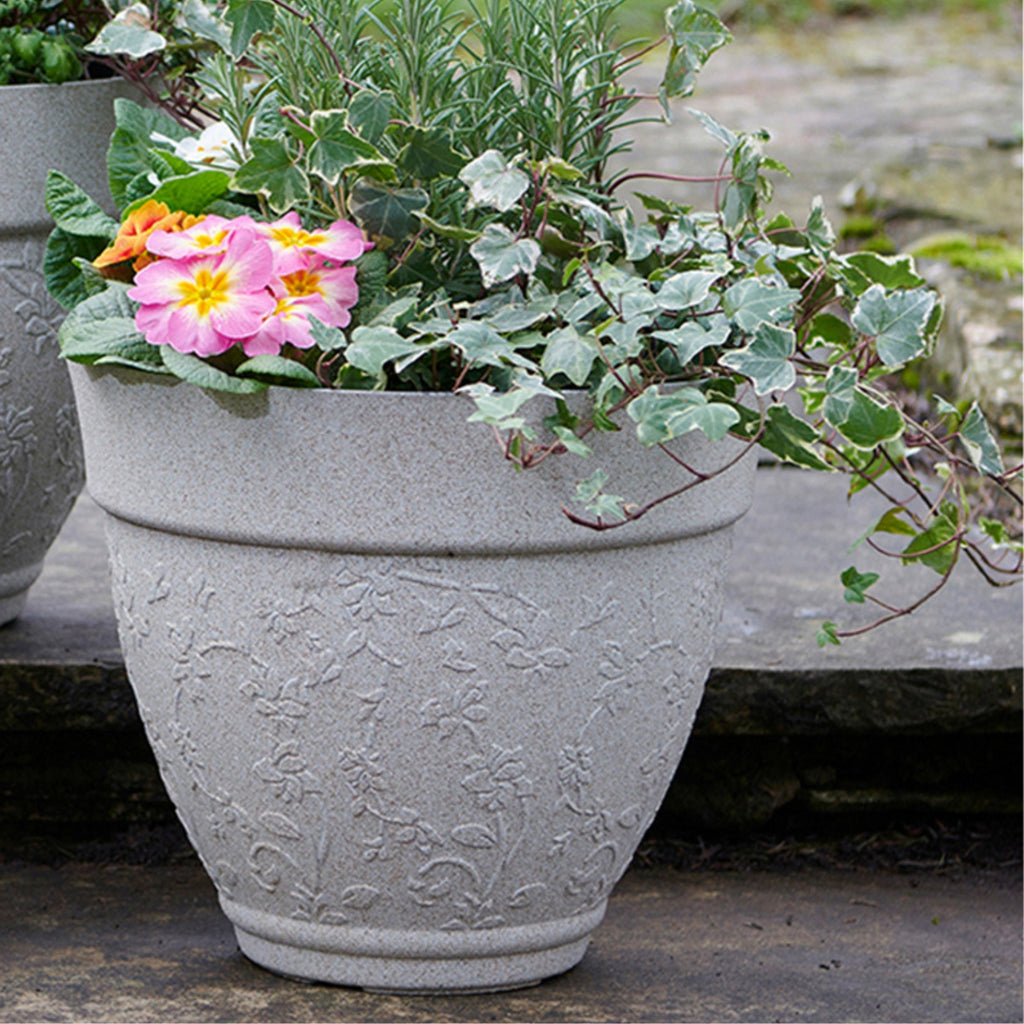 Floral Design Planters Sandstone Finish - Set of 3