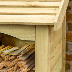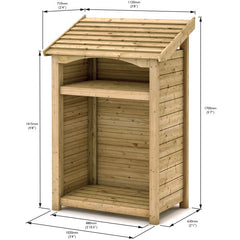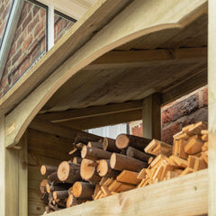 This elegantly designed log store features an arch fascia and fine sawn detailing, making it an impressive feature in any garden. With a large storage capacity, it can easily hold a double row of logs up to 270mm long. The handy shelf can be positioned at any height within the store, ideal for sticks and kindling.