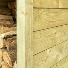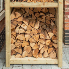 The heavy duty timber construction is pressure treated for long life protection against the elements. It has a raised slatted floor and top side and rear vents to allow good airflow through the store, keeping logs dry and allowing unseasoned logs to season ready for use.