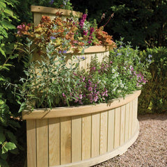 The Rowlinson Marberry Corner Cascade Planter is a three tier planter set that will fit into any right angled corner. It can also be used as three separate planters. As a tiered structure it is ideal for all trailing plants such as Geraniums and will create a colourful cascade in your garden. Wooden planters are good for keeping the soil at a consistent temperature.