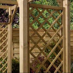 The Broadway Arch features a traditional arch design with a wide stance which can fit pathways and create entrances up to 1.5m wide. With attractive diamond trellis panels and a pergola-style top that is ideal for climbing plants, creating an attractive feature in your garden. The Broadway Arch is constructed from pressure treated timber to ensure longevity, in a natural finish that can be painted or stained to suit the style of any garden.