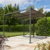The Florence Canopy 3x3 is permanent outdoor structure with a sliding roof and contemporary style. The open slatted screen on the side creates a modern backdrop on the structure, making it ideal in helping create a garden zone and building around garden furniture.
