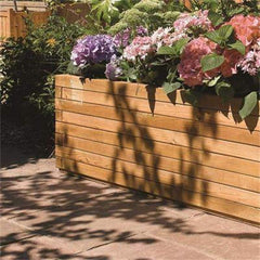 This sturdy large wooden planter is a substantial garden feature and with its striking colour is a brilliant way to show off your beautiful blooms. A great choice for a patio or courtyard, the planter is produced from quality pressure treated wood to protect it against rot. It comes with a Natural timber finish which can be painted or stained if desired. Wooden planters are good for keeping the soil at a consistent temperature.