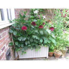 , "I'm so thrilled with my beautiful sturdy planter, which we've painted a stone colour to match other garden planters and compost bin. Now filled with Dahlias and Clematis, it looks great. Many thanks Heritage Gardens"