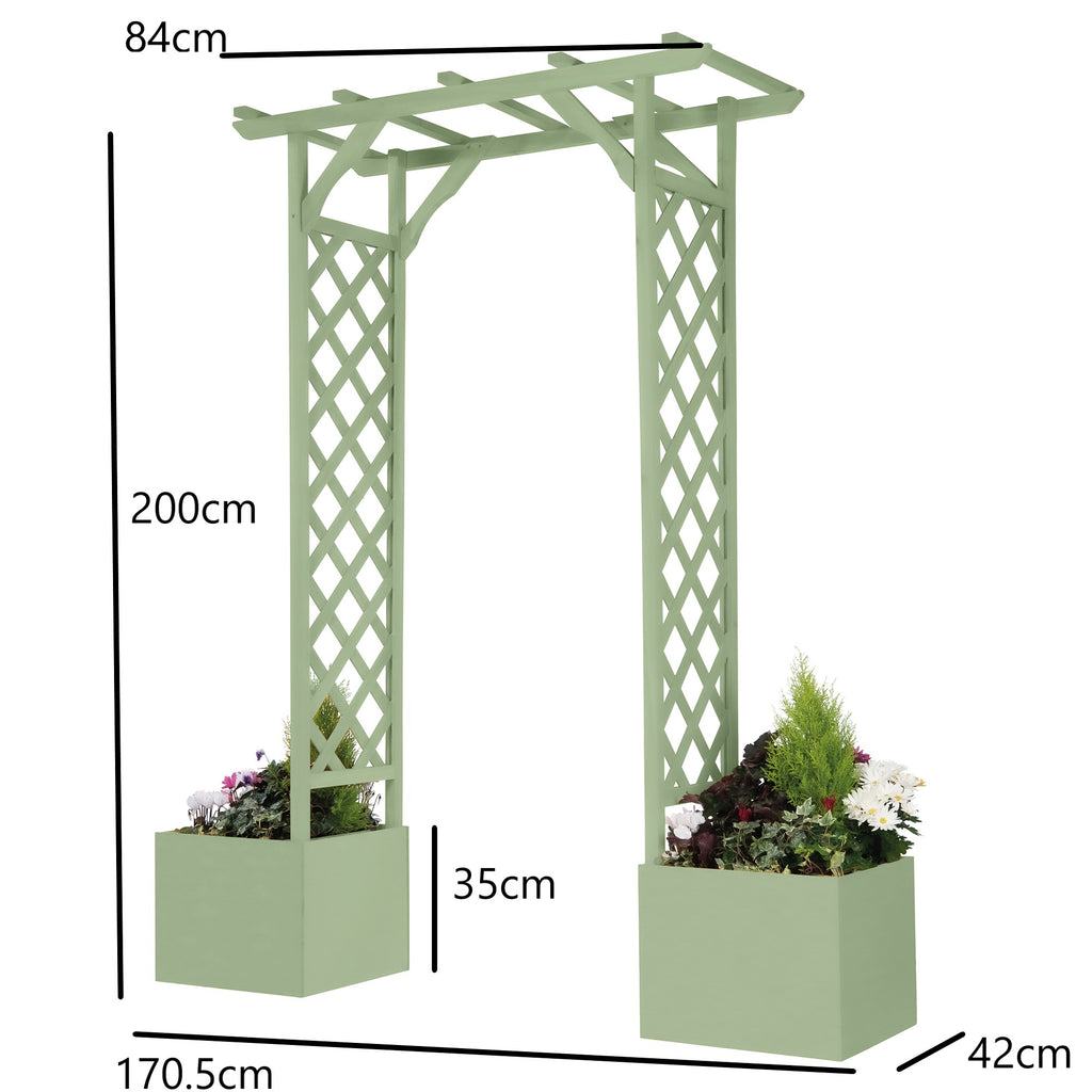 Square Top Wooden Arch & Planters - Sage Green