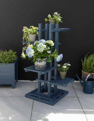 The Florenity Verdi Plant Stand is made from solid hardwood & will hold four pots. Its clever design with large base means that the stand is very stable & will hold large pots as well as small ones. It has an attractive shape & your plants can be seen from any angle. This plant stand is designed to complement the Florenity range of garden furniture & accessories. It is made from Eucalyptus hardwood & has been painted a soft green shade with contrasting textured teak look surfaces to give a vintage look.